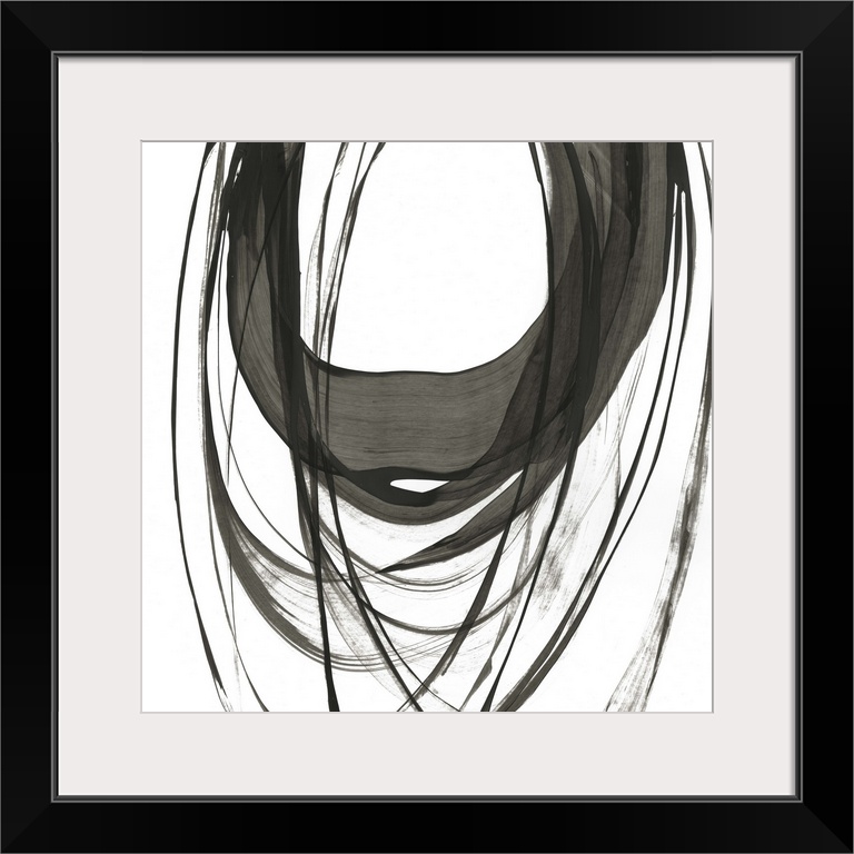 <p>Quick circular strokes of black paint on white.</p>