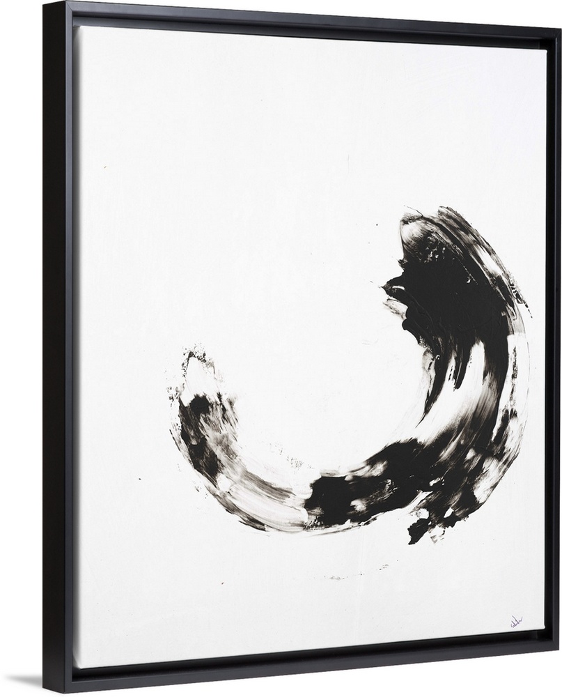 <p>Minimalist abstract painting with a black curved brushstroke in the middle of a white background.</p>