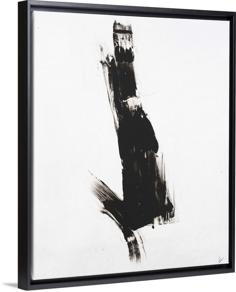 <p>Minimalist abstract painting with a black brushstroke in the middle of a white background.</p>