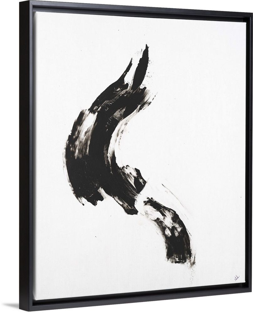 <p>Minimalist abstract painting with a black brushstroke in the middle of a white background.</p>