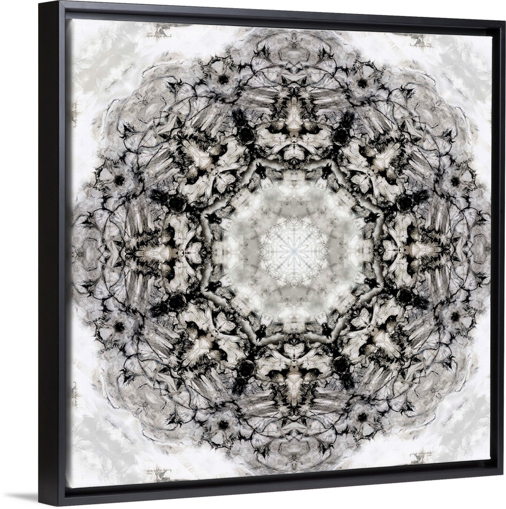 <p>Square abstract art in black and white hues with kaleidoscope-like patterns and designs.</p>
