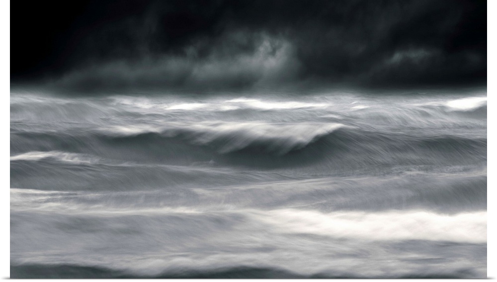 <p>Powerful waves in a seascape under a dark stormy sky</p>