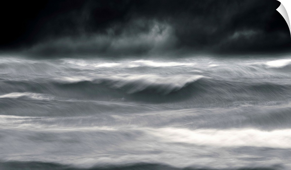 <p>Powerful waves in a seascape under a dark stormy sky</p>