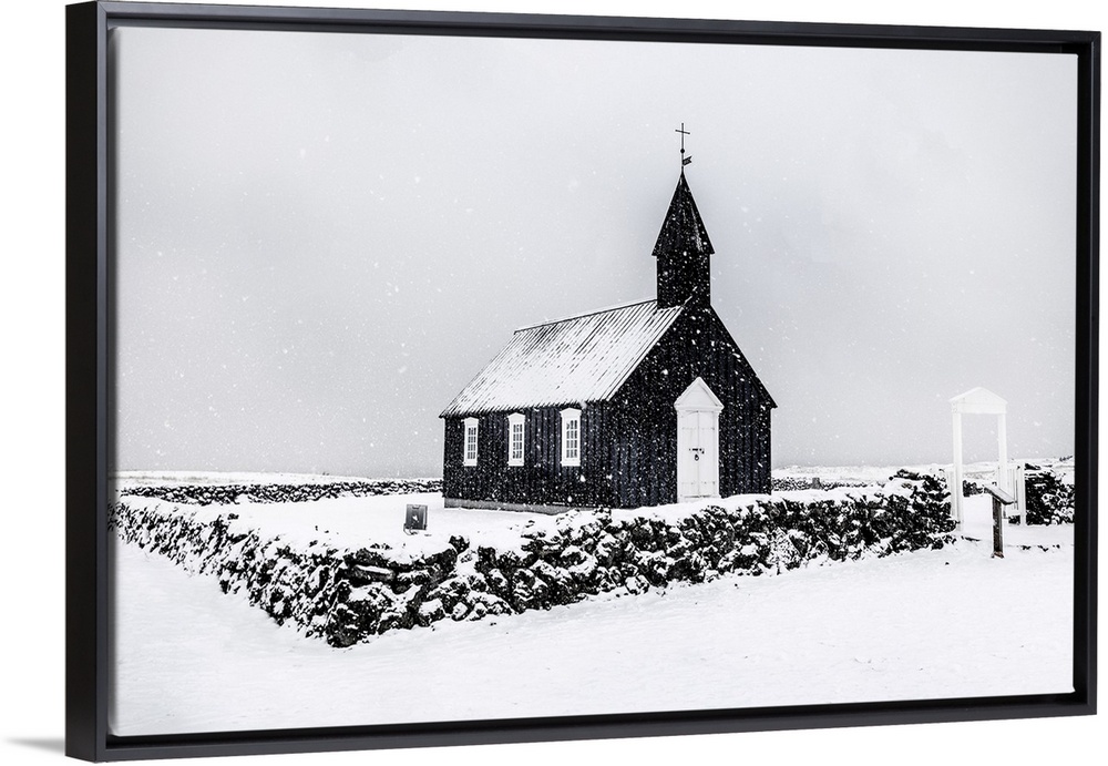 Church Black and White Wall Art Four Seasons Winter Lee Frost Landscapes Photography Europe Iceland