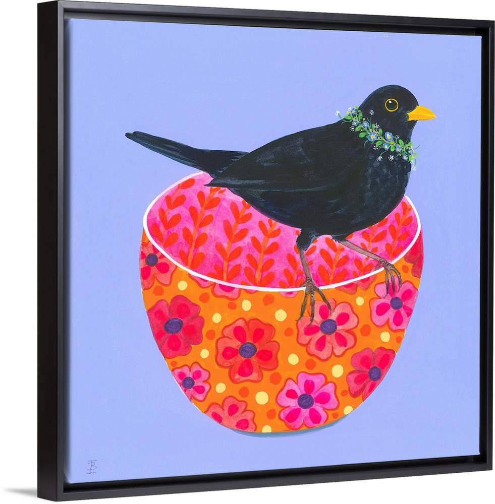 Art Maximalism Blue Wall Art Contemporary Art Florals Painting Wildlife Bird