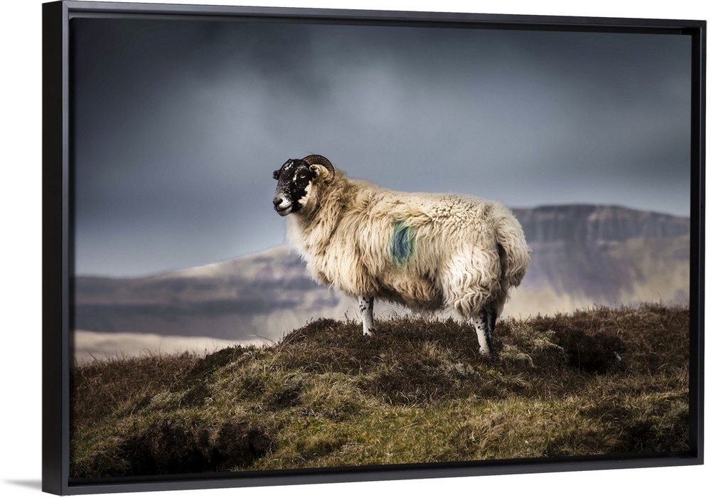 <p>Wild Blackface Sheep standing on the hills of the Quiraing on the Isle of Skye with stormy skye in the background.</p>