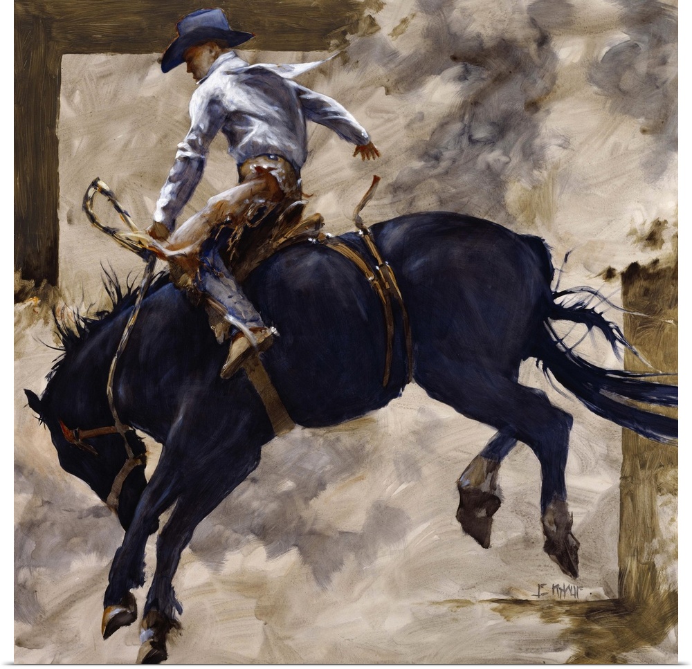 <p>Contemporary western theme painting of a cowboy riding a bucking bronco.</p>