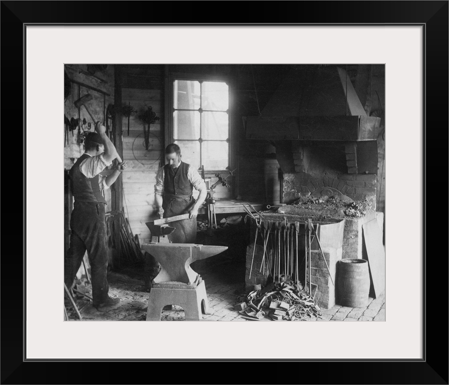 <p>Old time iron forge with gentlemen blacksmith's.</p>