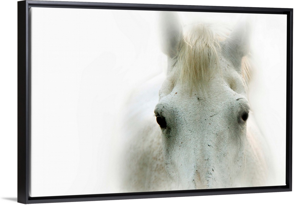 <p>A close up photograph of a white horse with soft, faded edges.</p>