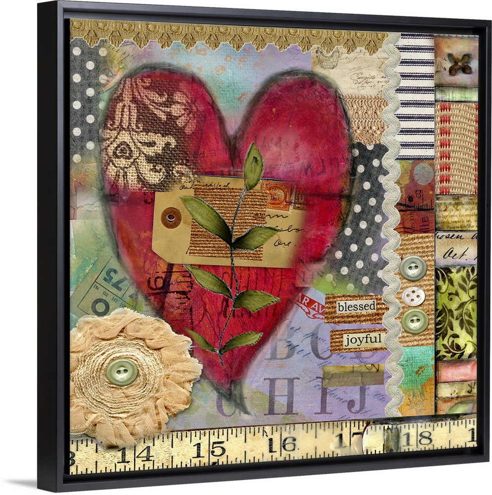 <p>Vintage heart ephemera collage with textural feel, beautiful for any room</p>