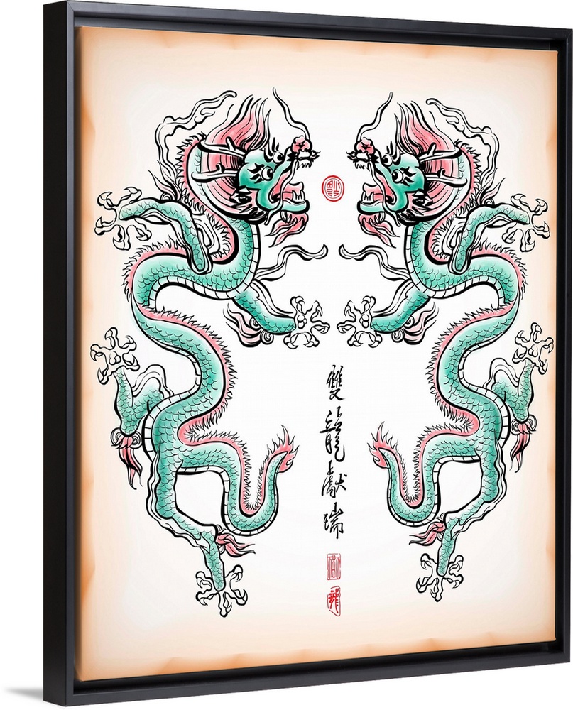 <p>Chinese Ink Painting of Dragon Translation: Blessing of Double Dragons</p>