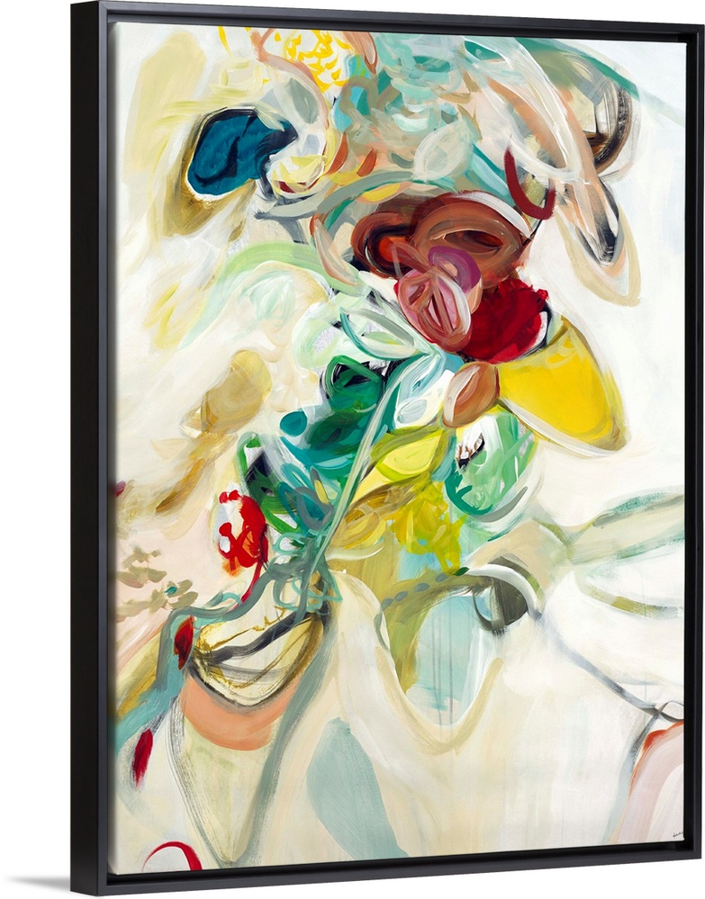 <p>Contemporary abstract painting with busy, loopy brushstrokes in playful colors.</p>