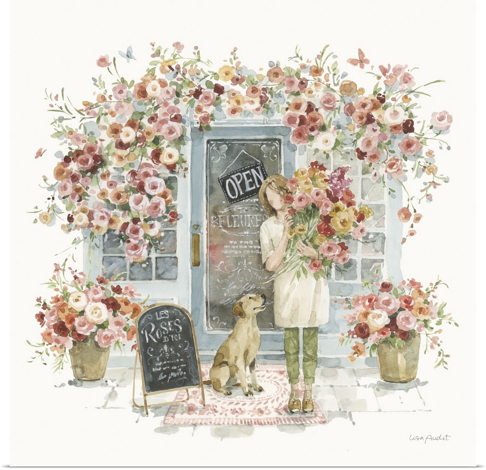 Art Lisa Audit Decorative Art Florals Painting People Watercolor