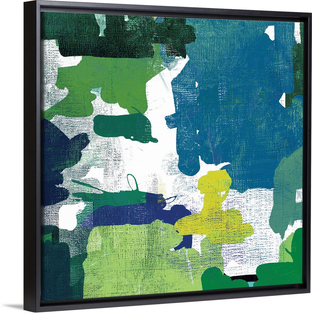 <p>A contemporary painting of abstract shapes in varies shades of green.</p>