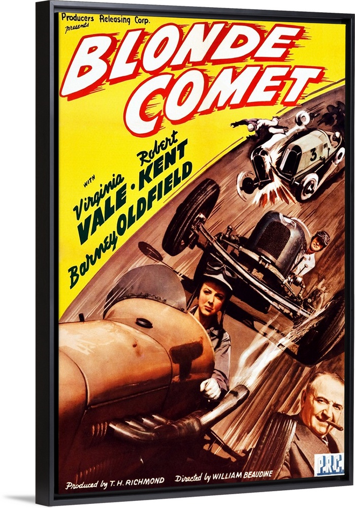 <p>Blonde Comet, L-R: Virginia Vale, Robert Kent Lower Right: Barney Oldfield On Poster Art, 1941.</p>