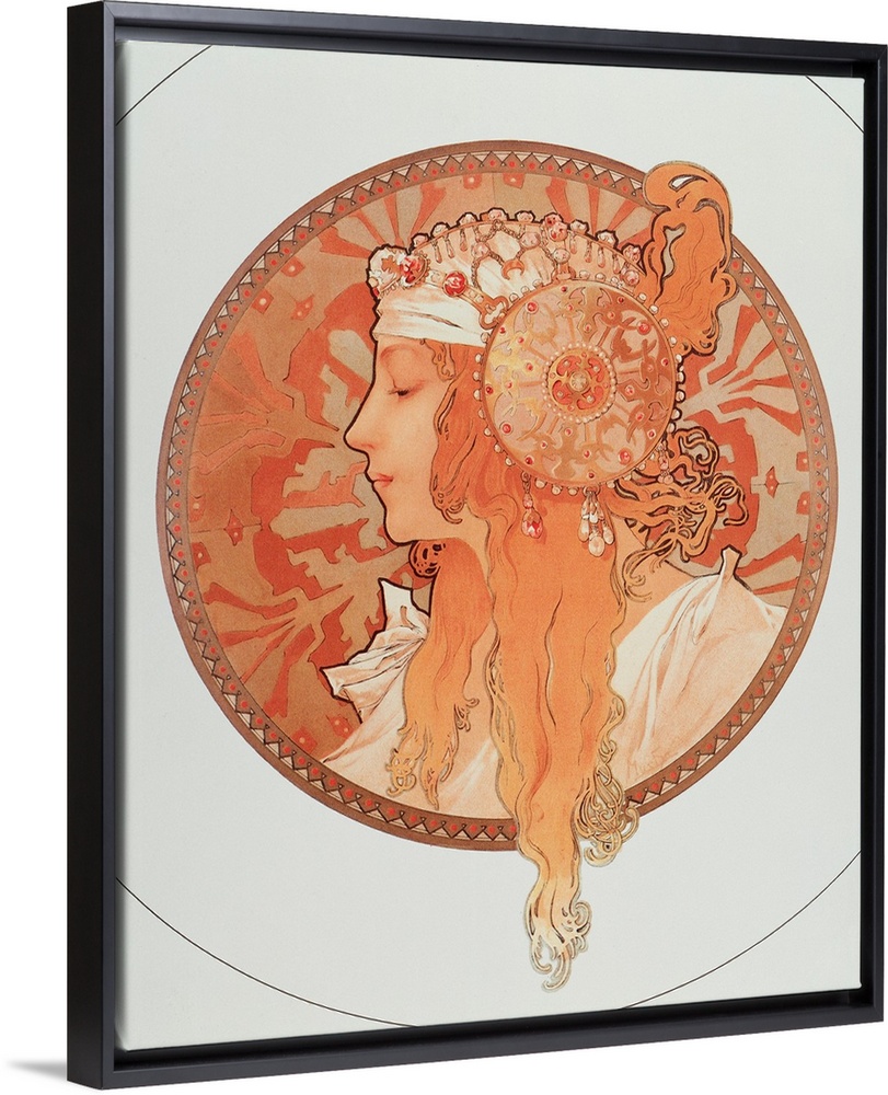 Art Classic Art Modern Art Art Nouveau Figurative Portraits Alphonse Mucha Orange Wall Art Painting People Portraits