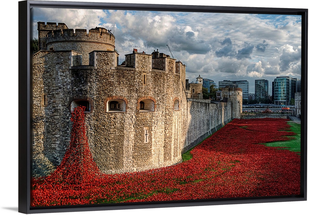 <p>A sea of red ceramic poppies planted around the Tower of London in honor of the lives lost.</p>