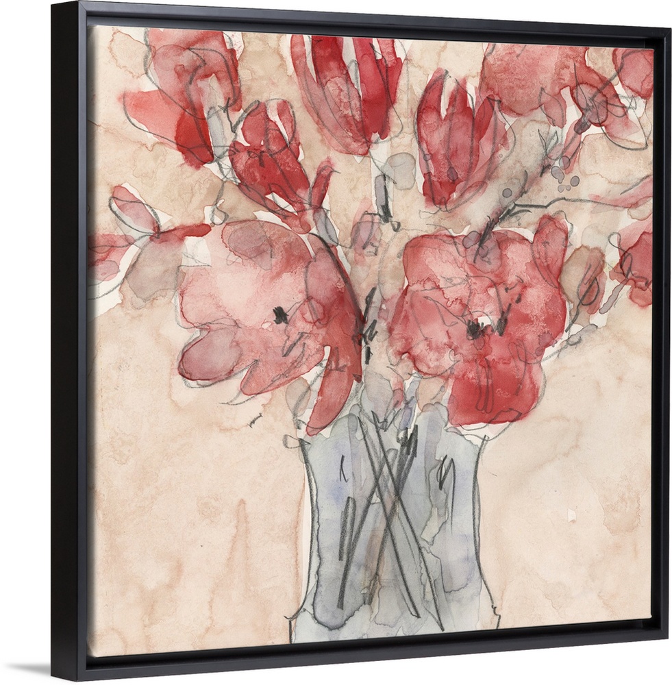 African-American Art Still Life and Florals Art Contemporary Art Plants and Flowers Samuel Dixon Florals Painting Red Wall Art Watercolor