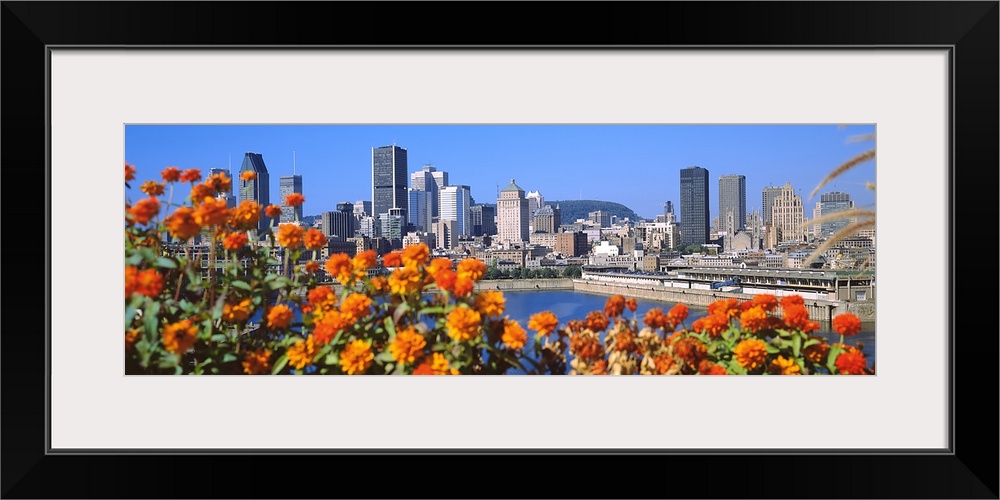 <p>Blooming flowers with city skyline in the background, Montreal, Quebec, Canada</p>