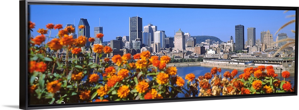 <p>Blooming flowers with city skyline in the background, Montreal, Quebec, Canada</p>