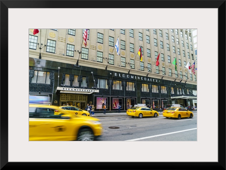 <p>Bloomingdales Department Store and yellow taxi cabs, Lexington Avenue, Manhattan, New York City, United States of America, North America</p>