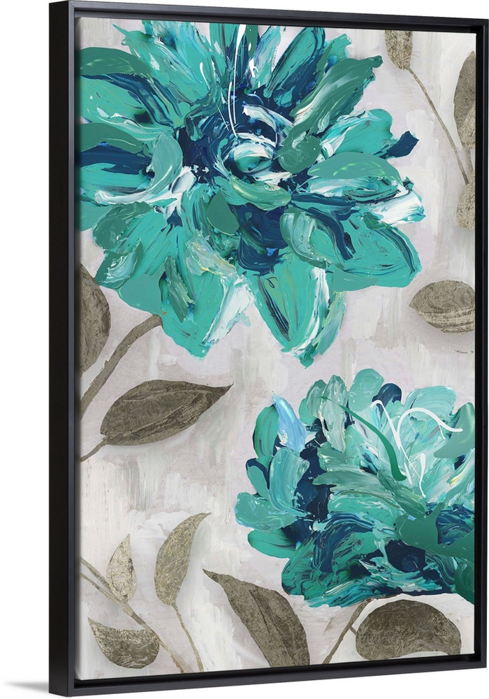 <p>Contemporary artwork of teal flowers in full bloom.</p>