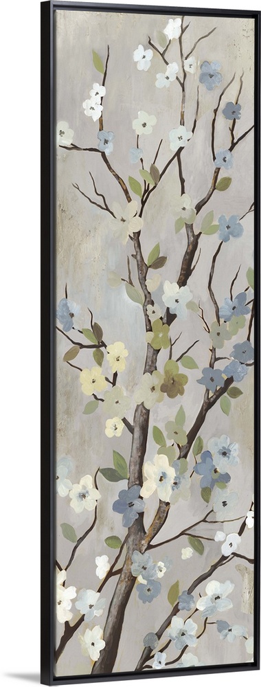 <p>Contemporary home decor artwork of a tree branch with white flowers in bloom.</p>