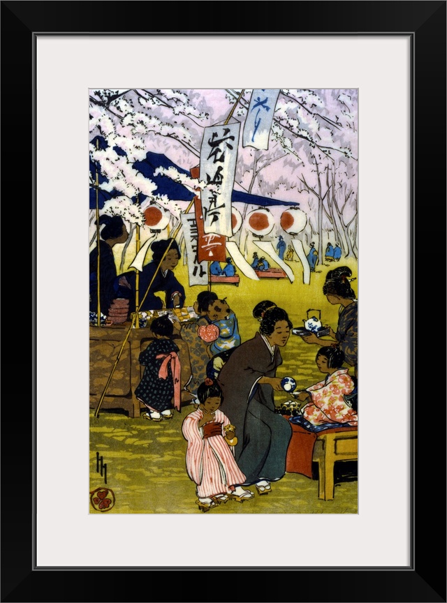 <p>Blossom time in Tokyo by Helen Hyde, Published: c1914: Print shows mothers and children drinking tea and eating among cherry blossoms.</p>