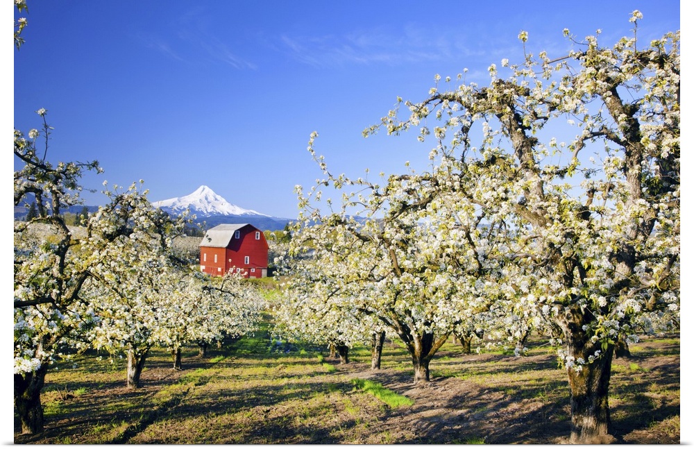 <p>04 May 2011 --- sunrise Mt.Hood and old red barn, Hood River Valley and apple blossoms, Hood River Oregon, Columbia River Gorge, Pacific Northwest. have property release on file. --- Image by Craig Tuttle/Corbis</p>