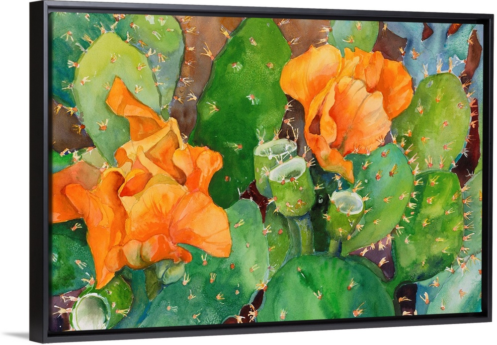 Art Traditional Contemporary Art Plants and Flowers Florals Cactus Green Wall Art Orange Wall Art Painting Joanne Porter