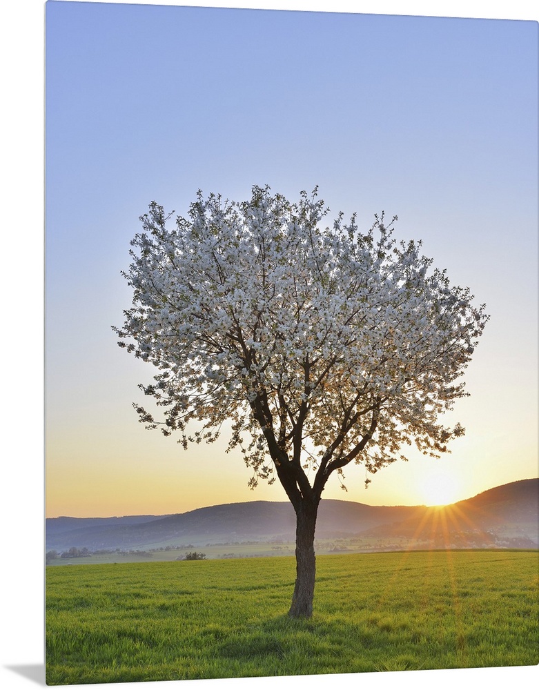 <p>Blossoming Cherry Tree in Spring at Sunrise, Miltenberg, Spessart, Franconia, Bavaria, Germany</p>