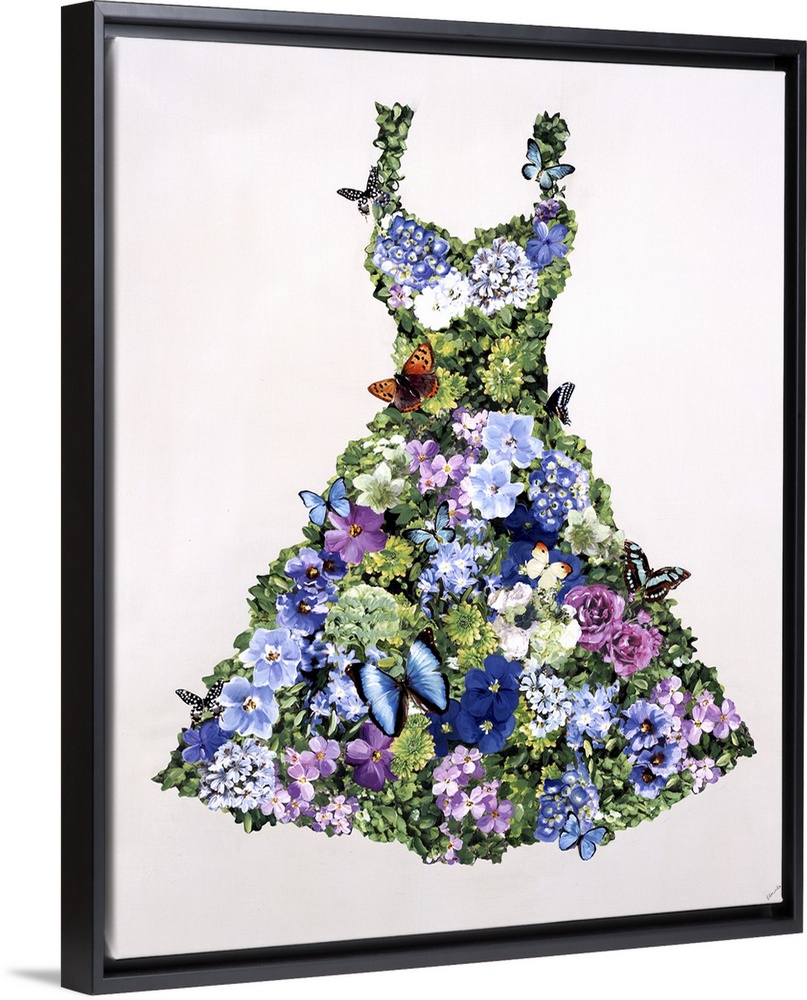 <p>A floral design in the shape of a dress with butterflies.</p>