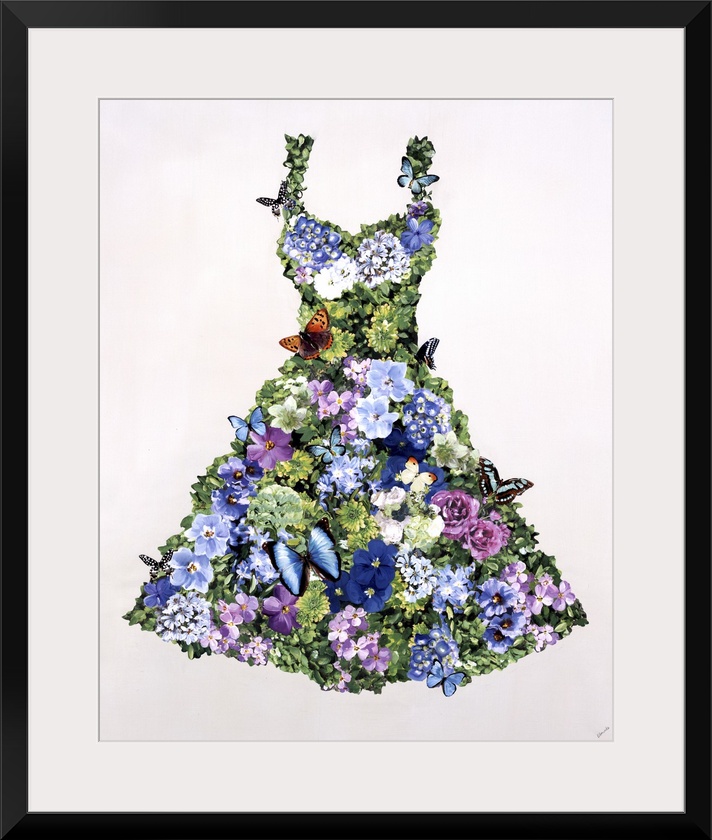 <p>A floral design in the shape of a dress with butterflies.</p>