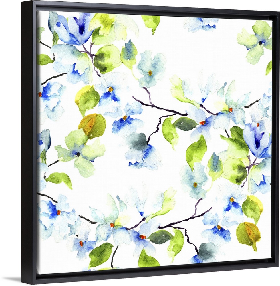 <p>Seamless pattern with blossoming tree brunch, originally a watercolor illustration.</p>