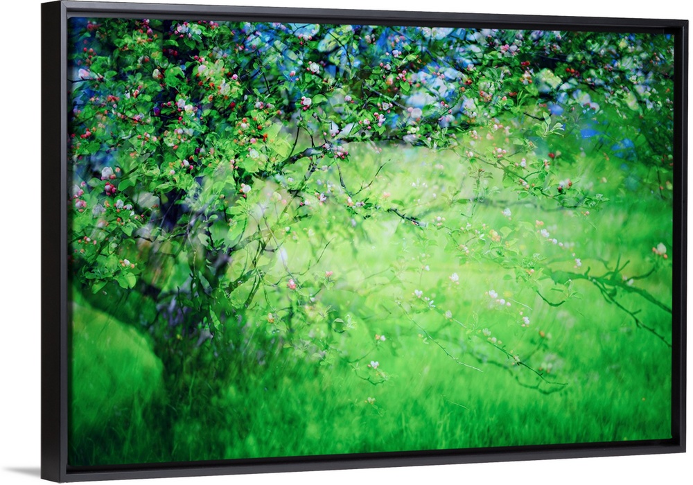 <p>Spring blossoms on a wild apple tree in a small town in British Columbia, Canada. The image was made using the in-camera burst multiple exposure + ICM (Intentional Camera Movement) technique. The purpose is to give an impression of an apple tree in its full Spring glory. Ursula Abresch Spring Collection.</p>