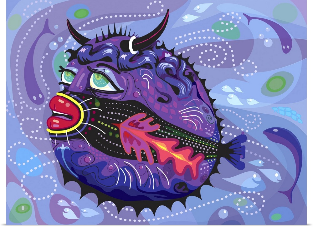 <p>Tropical Bull Fish Illustration on swirling underwater background.</p>
