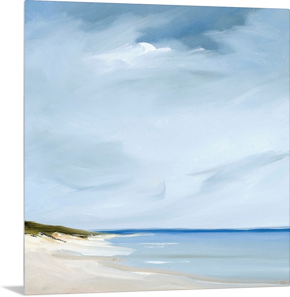 <p>A contemporary painting of a calm beach scene.</p>