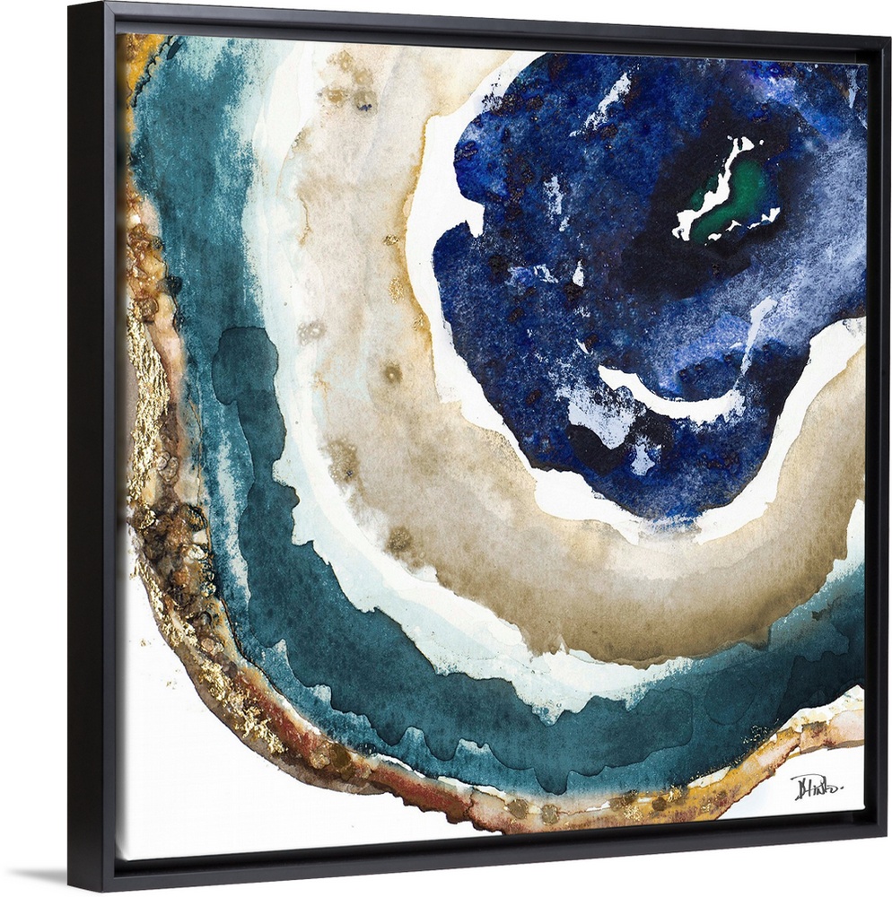 <p>This contemporary artwork offers the intricacies of sliced agate completed in watercolors with gold accents.</p>