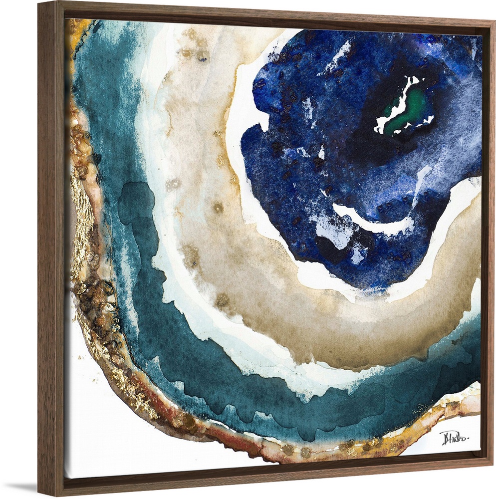 <p>This contemporary artwork offers the intricacies of sliced agate completed in watercolors with gold accents.</p>