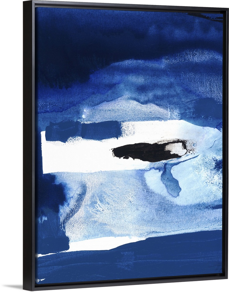 <p>Abstract painting in dark navy blue contrasting with white.</p>