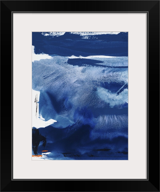 <p>Abstract painting in dark navy blue contrasting with white.</p>