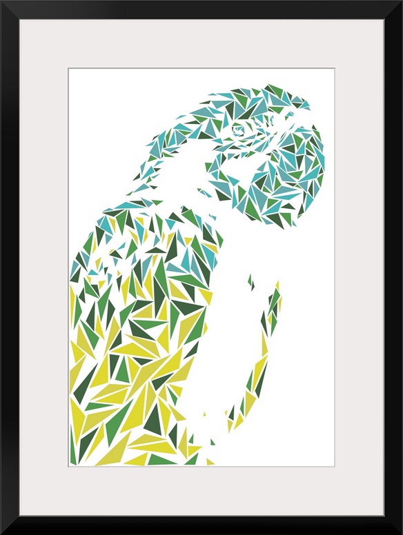<p>A macaw made up of triangular geometric shapes.</p>