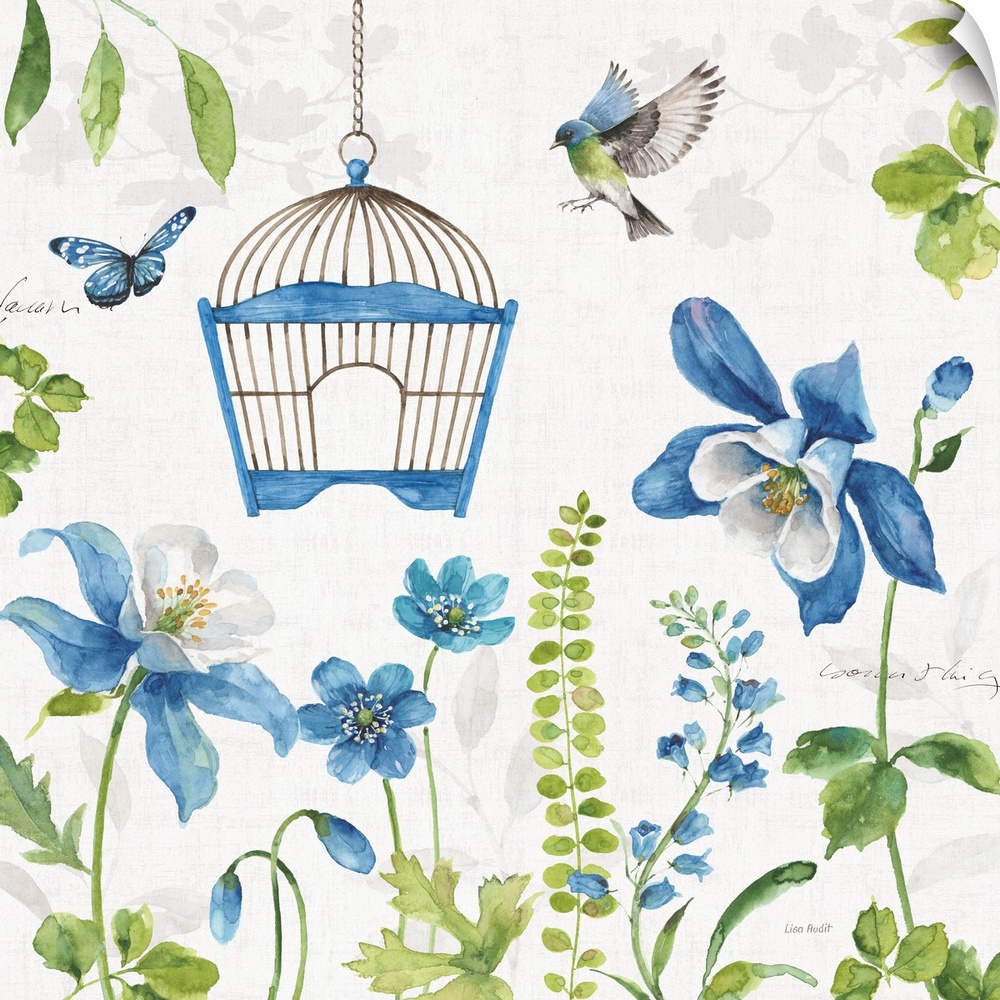 Art Lisa Audit Decorative Art Florals Painting Watercolor Bird