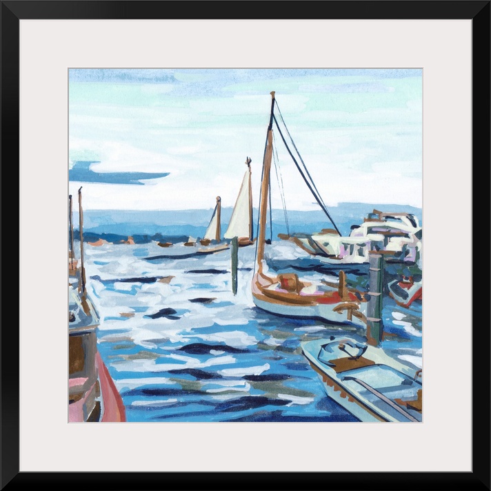 Art Coastal Beach House Décor Blue Wall Art Rivers, Lakes, and Oceans Decorative Art Harbor Painting Transportation Boat Sailboat Melissa Wang