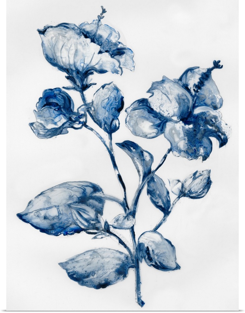 Art Blue Wall Art Contemporary Art Florals Painting Watercolor