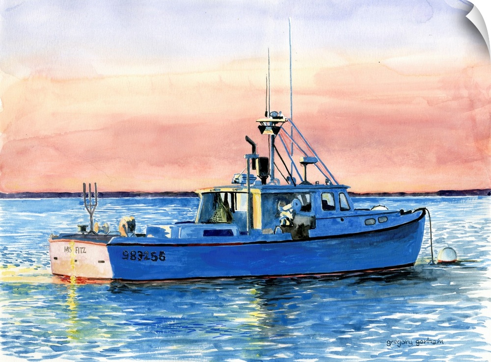 Art Blue Wall Art Contemporary Art Gregory Gorham Painting Transportation Boat Watercolor