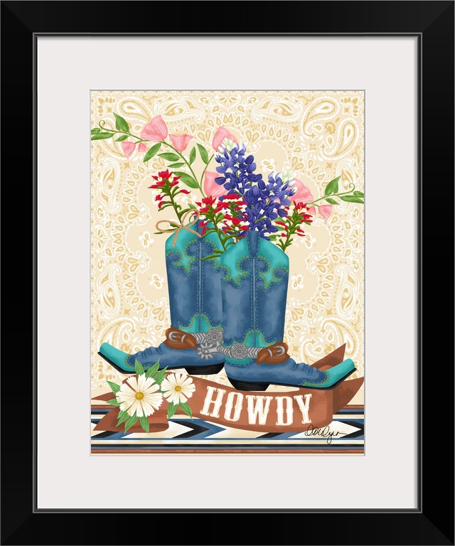 <p>The state flower of Texas is given star treatment as they burst from the boots!</p>