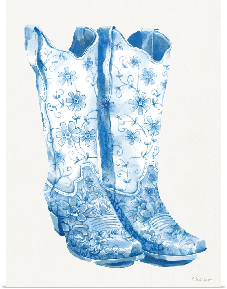Art Blue Wall Art Howdy Cowgirl Decorative Art Fashion And Beauty Shoes Beth Grove Painting Watercolor Western