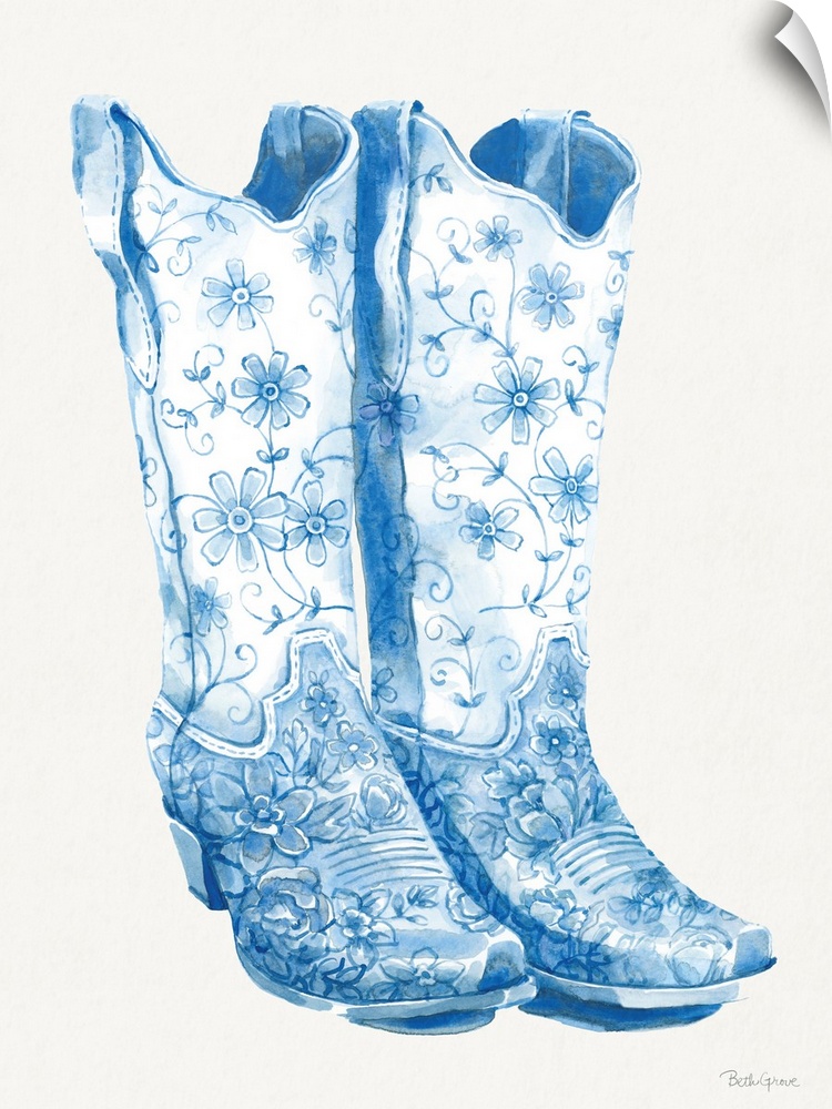 Art Blue Wall Art Howdy Cowgirl Decorative Art Fashion And Beauty Shoes Beth Grove Painting Watercolor Western