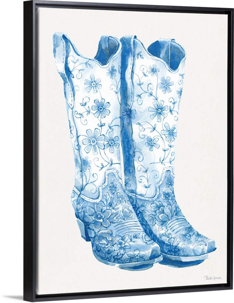 Art Blue Wall Art Howdy Cowgirl Decorative Art Fashion And Beauty Shoes Beth Grove Painting Watercolor Western